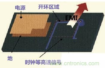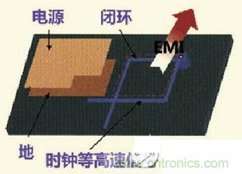 時鐘信號等高速信號網絡,在多層的PCB走線的時候一旦產生了開環的結果,將產生線形天線,增加EMI的輻射強度。