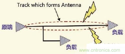 規則二提到高速信號的閉環會造成EMI輻射,然而開環同樣會造成EMI輻射。