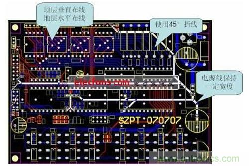 (2)合理安排接口元器件的位置和方向。一般來說,作為電路板和外界(電源、信號(hào)線)接的連接器元器件,通常置在電路板的邊緣,如串口和并口。放在電路板的中央,不利于接線,也可能因?yàn)槠渌骷淖璧K而無法連接。另外還要注意接口的方向,使連接線可以順利地引出,遠(yuǎn)離電路板。接口放置后,應(yīng)當(dāng)利用接口元器件的String(字符串)清晰地標(biāo)明接口的種類;對(duì)于電源類接口,應(yīng)當(dāng)標(biāo)明電壓等級(jí),防止因接線錯(cuò)誤導(dǎo)致電路板燒毀。