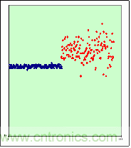 因為國內電網質量不一,在一些質量差的地區,容易影響電磁爐觸摸按鍵的正常工作。如果不能做電源隔離,就會看到一下圖6的差別(藍色表示無按鍵,紅色表示鍵被按下),而這些圖還只是在電磁爐沒有開功率的情況下的,當電磁爐工作時產生的電磁輻射將會使看到的信號更加雜亂無章。在實驗中發現,采用與外界電網隔離或使用軟件濾波,按鍵效果都能得到明顯改善。