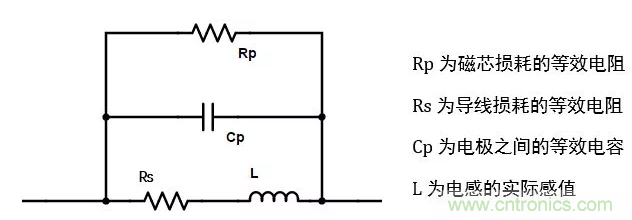 因此,需要用一個較為復(fù)雜的模型來表示實(shí)際電感,常用的等效模型如下: