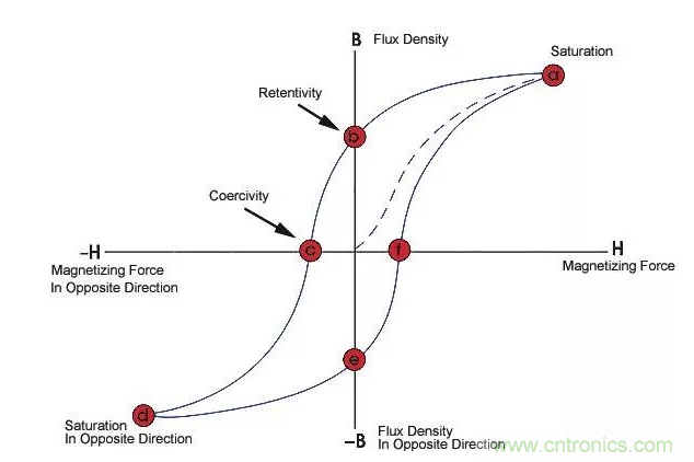 增加磁芯的磁導(dǎo)率,可以提高電感值,通常使用鐵磁性材料做磁芯。鐵磁性材料存在磁飽和現(xiàn)象,即當(dāng)磁場強(qiáng)度超過一定值時,磁感應(yīng)強(qiáng)度不在增加,即磁導(dǎo)率下降了,也就是電感下降了。在額定電感值范圍內(nèi),允許的最大電流即為飽和電流。