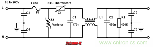 為了解決這一問題,最簡單方法加一個NTC熱敏電阻(如下圖1中的Z1)來減小涌浪電流的大小,此時通電瞬間的浪涌電阻相當于電壓除以NTC熱敏電阻與濾波電容的等效串聯電阻之和