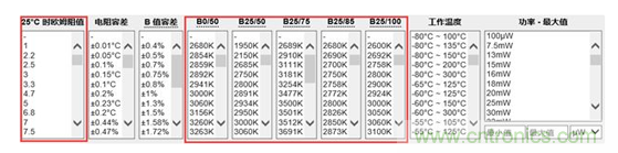 圖3,從Digi-Key網站中很快篩選適當NTC熱敏電阻參數