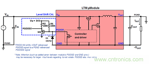 圖2.μModule穩壓器的輸入信號必須從電源地電平轉換為-VOUT參考電平