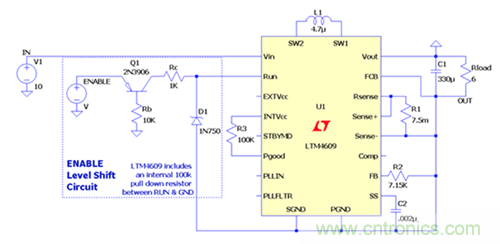 圖4.具有電平轉換使能電路的LTM4609