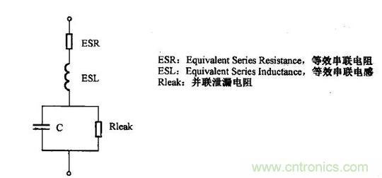 其中寄生電感有電容的引腳電感和電容器件兩級(jí)之間的等效電感串聯(lián)而成,主要取決于封裝。寄生電阻有電容的引腳電阻和電容器件兩級(jí)之間的等效電阻串聯(lián)而成,主要取決于電容的工作溫度、工作頻率、電容體本身的導(dǎo)線電阻等;而泄露電阻取決于電容本身的泄露特性。