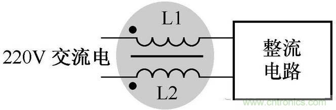 這一抗干擾電路串聯在交流電回路中。L1、L2不需要接地線,所以安全性能比較好。