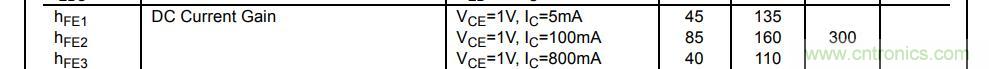 最大耐壓Vceo=25V,足夠應用于5V供電系統中;最大集電極電流Ic=1.5A,足夠我們的LED燈使用。