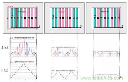 不同繞組結構的磁場和電流密度分布