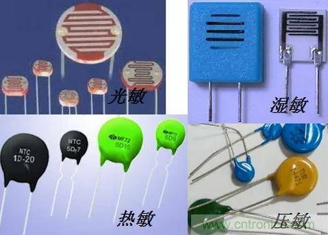 另外很多熱敏、壓敏、光敏、濕敏電阻的封裝很像個電容,或看起來根本不像個電阻器,如下圖,這類電阻可以參照下文的無極電容封裝來設計,比如RAD-0.2等。