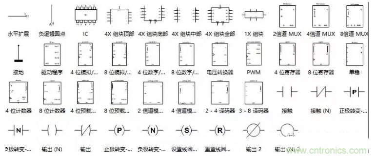 以寄存器、轉換器、計數器為代表的基礎集成電路元器件,在電路圖中較為常見。