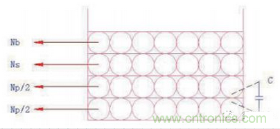 此種繞法可以顯著降低電壓斜率,對EMC是非常有利的。缺點就是繞制工藝相對復(fù)雜。
