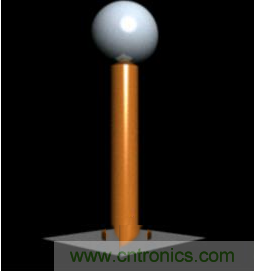 3.組裝線圈。把次級線圈的線的一頭接在那個金屬球上。這個球,我們稱為放電頂端。它和地面形成了一個電容。然后用膠或者熱膠槍把球固定在管子一頭。