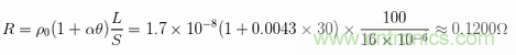 其次,我們需要知道保護性中性線電纜的電阻是多少。這個值可以根據具體線路參數來考慮。方便起見,不妨先規定這條保護性中性線電纜的長度是100米,電纜芯線截面是16平方毫米,它的工作溫度是30攝氏度,則它的電阻為: