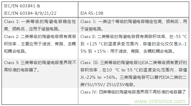 一類等級IEC/EN 60384-8/21 和 EIA-RS-198