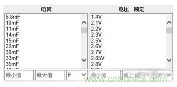 圖4:超級電容器的電容及額定電壓篩選列表