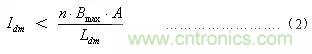 盡管少量的差模電感非常有用,但太大的差模電感可以使扼流圈發生磁飽和。可根據公式(2)作簡單計算來避免磁飽和現象的發生。