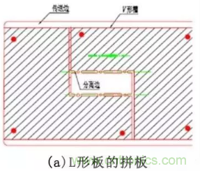 異形板的拼板,要注意子板與子板間的連接,盡量使每一步分離的連接處處在一條線上,見(jiàn)圖3.5所示。