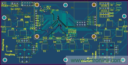 接下來將元件移到電路板外框內,并進行正常的布線。