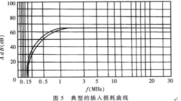 插入損耗用分貝(dB)表示,分貝值愈大,說明抑制噪聲干擾的能力愈強(qiáng)。鑒于理論計算比較煩瑣且誤差較大,通常是由生產(chǎn)廠家進(jìn)行實際測量,根據(jù)噪聲頻譜逐點測出所對應(yīng)的插入損耗,然后繪出典型的插入損耗曲線,提供給用戶。