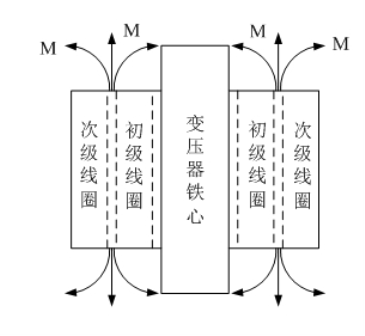 我們知道,在開關電源里面,開關電源變壓器是最大的磁感應器件。反激式開關電源變壓器,就是通過把流過變壓器初級線圈的電流轉換成磁能,并把磁能存儲在變壓器鐵心之中,然后,等電源開關管關斷的時候,流過變壓器初級線圈的電流為0的時候,開關電源變壓器才把存儲在變壓器鐵心之中磁能轉換成電能,通過變壓器次級線圈輸出。開關電源變壓器在電磁轉換過程中,工作效率不可能100%,因此,也會有一部分能量損失,其中的一部分能量損失就是因為產生漏磁,或漏磁通。這些漏磁通穿過其它電路的時候,也會產生感應電動勢。感應電動勢的大小可由(13)、(14)或(16)式求得。