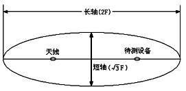 10kHz~1000MHz頻段的輻射測(cè)試場(chǎng)地應(yīng)該是一個(gè)空曠、平坦的場(chǎng)地,在其邊界范圍內(nèi)無架空線,附近無反射結(jié)構(gòu)物(如鋼筋水泥建筑和高大樹木等),而且具有足夠大的尺寸,使天線、試品和反射結(jié)構(gòu)物之間能充分分開。滿足標(biāo)準(zhǔn)的輻射測(cè)試場(chǎng)地應(yīng)該是一個(gè)由長軸等于兩倍焦距(F)、短軸等于倍焦距的橢圓所包圍的場(chǎng)地,如圖1所示。試驗(yàn)時(shí),EUT和測(cè)量天線將分別處在兩個(gè)焦點(diǎn)上。