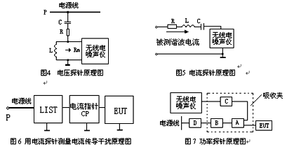 國際曾有人建議對(duì)小型電子設(shè)備采用類似于CLSPRl4一l(對(duì)應(yīng)的我國國家標(biāo)準(zhǔn)是GB4343—l《家用和類似用途電動(dòng)、電熱器具、電動(dòng)工具以及類似電路的無線電干擾特性的測(cè)量方法和允許值》)中所提供的吸收鉗(或稱為功率探針、鐵氧體鉗)方法來測(cè)試EUT對(duì)外的輻射功率。利用吸收鉗可以測(cè)量5MHz—300MHz的傳導(dǎo)干擾功率。采用此法的前提是EUT尺寸較小,其輻射到空間的能量主要是通過EUT的電源線等逸出的。因此,對(duì)這部分能量的測(cè)量可以用一個(gè)環(huán)繞電源線的吸收裝置來實(shí)現(xiàn)。這個(gè)吸收裝置便被稱為吸收鉗。這個(gè)方法的優(yōu)點(diǎn)是簡便易行,對(duì)環(huán)境要求不高,在屏蔽室里便可進(jìn)行,而且測(cè)試結(jié)果有很好的重復(fù)性和可比性。電壓、電流傳導(dǎo)干擾可分別由電壓探針和電流探針測(cè)出。圖4、圖5分別為電壓探針和電流探針原理圖。圖6為電流探針測(cè)量電流傳導(dǎo)干擾原理圖。功率探針原理見圖7。
