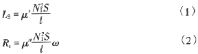 通過上式把磁學(xué)參數(shù)與電學(xué)參數(shù)直接聯(lián)系起來。它表示磁性材料的磁性參數(shù)在電路中充當(dāng)?shù)慕巧J?1)表述電路中的電感直接與磁材料的彈性磁導(dǎo)率μ′有關(guān),表示器件的儲能大小與頻率無關(guān)的純電感性。而電路中電阻R與磁性材料復(fù)數(shù)磁導(dǎo)率的虛數(shù)部分μ″有關(guān)。式(2)則既與材料的渦流損耗、磁滯損耗及剩余損耗等有關(guān),并且與頻率也有關(guān)。反映在電學(xué)上就相當(dāng)于等效電阻R。