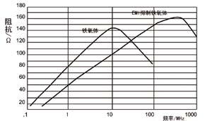 圖2EMI抑制鐵氧體 圖3鐵氧體隨頻率變化的阻抗分量