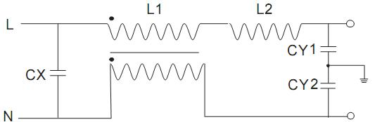 圖1 一級EMI 濾波器電路。