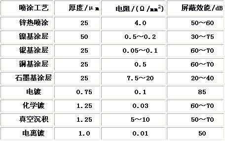 幾種噴涂工藝達到的屏蔽效能見表3。