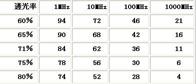 表頭或顯示器的屏蔽,可在表頭或顯示器的正面設置透光導電材料來實現。透光導電材料是在有機介質或玻璃的表面覆蓋一層導電膜,使其既透光,又具有一定的屏蔽效能。不同透光率導電玻璃的屏蔽效能見表5。