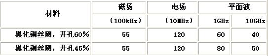 表8 金屬絲網屏蔽玻璃的屏蔽效能dB