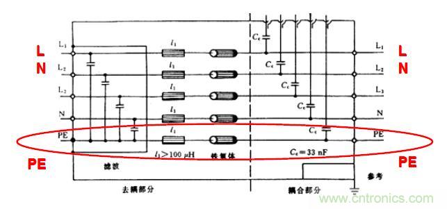 同樣,試品如通過三芯電源進線(單相,一根L,一根N,及一根電氣接地線),而未設(shè)專門接地線時,則此試品也不允許另外再設(shè)接地線來接地,而且按標準要求,試品的這根電氣接地線還必須經(jīng)受抗擾度試驗。