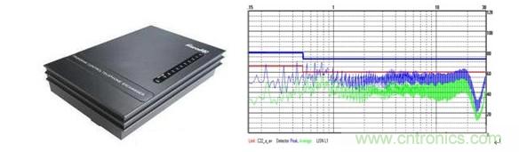 雖然電源自身電磁干擾方面投入了很大的設計成本,也符合承諾的各項指標要求,但是電源在市場應用方面還是難免出現(xiàn)電磁干擾超標的問題;此時,很多的設計工程師都會認為問題的根源在于電源,這方面的認識其實是有誤區(qū)的,因為電磁干擾傳導騷擾測試項目,主要是針對電源端口的,那么電源端口就成了他的傳輸路逕,所有的電磁干擾都會經(jīng)過電源端口到達被測設備,但是測試設備測試到的電磁干擾除了來自電源本身外,主要的部分還包括整機中的其他部分產(chǎn)生的電磁干擾,以及設備內(nèi)部寄生參數(shù)的諧振產(chǎn)生的電磁干擾,這一類電磁干擾會通過電源端口耦合到測試設備,電源內(nèi)部的濾波器是無法進行實現(xiàn)對這部分電磁干擾進行濾波,電源應用環(huán)境千差萬別,所有電源設計濾波器部分都是以解決自身的干擾為首要考慮條件的同時,濾波器衰減特性及頻譜特性盡量會預留最大的余量,但不可能兼容所有應用場合;那么這就要求我們的整機設計人員在設計電源前端時候,一定要按照電源廠家推薦的應用電路進行設計,例如:LH15產(chǎn)品應用過程中出現(xiàn)EMI超標問題(見下圖)。