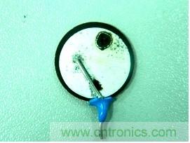 壓敏電阻對于瞬態(tài)浪涌脈沖進行電流泄放,多次泄放以后壓敏電阻的介質(zhì)ZnO會發(fā)生特性變化,這樣壓敏電阻的殘壓特性、泄放能力都會大大降低;更加嚴重的是壓敏電阻這種兩面鍍銀結構,表面鍍銀并無法實現(xiàn)100%均勻,那就說明每次瞬態(tài)浪涌沖擊,必然會存在整個壓敏電阻的表面有某個點最先導通,最先擊穿導通的點在承受多次沖擊之后,后首先燒毀,最終導致壓敏電阻損壞(見下圖)。