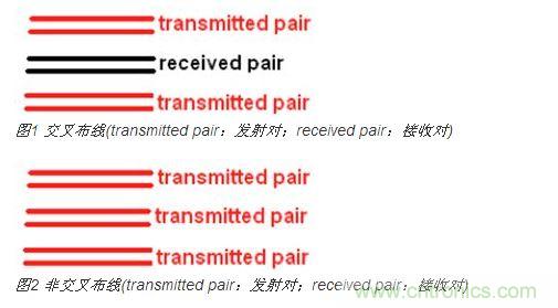 為了盡可能降低緊密耦合線對之間的串擾,微帶線采用收發(fā)交叉布線而帶狀線應用收發(fā)非交叉布線是一個更好的選擇。