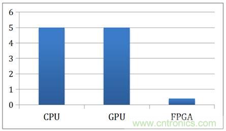 FPGA相對于CPU與GPU有明顯的能耗優(yōu)勢,主要有兩個(gè)原因。首先,在FPGA中沒有Instruction Fetch與Instruction Decode,在Intel的CPU里面,由于使用的是CISC架構(gòu),僅僅Decoder就占整個(gè)芯片能耗的50%;在GPU里面,F(xiàn)etch與Decode也消耗了10%~20%的能源。其次,F(xiàn)PGA的主頻比CPU與GPU低很多,通常CPU與GPU都在1GHz到3GHz之間,而FPGA的主頻一般在500MHz以下。如此大的頻率差使得FPGA消耗的能源遠(yuǎn)低于CPU與GPU。