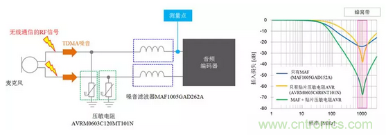 通過同時使用MAF與貼片壓敏電阻對于抑制TDMA噪音擁有極佳的效果