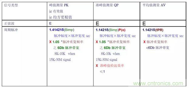 峰值、準(zhǔn)峰值和平均值測(cè)量的結(jié)果比較
