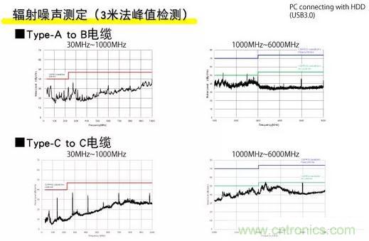 雖然這里使用TypeA-TypeB和TypeC-TypeC作為連接電纜,但兩種噪聲水平都低于不必要的輻射噪聲的調節值,并且沒有出現問題。
