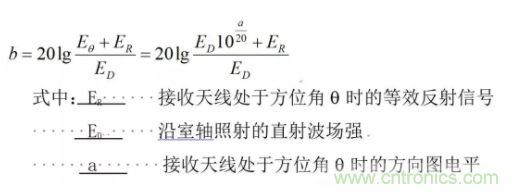 將接收天線轉到比最大電平低a(dB)的方位角q時,則所接收的直射信號Eq=ED10a/20。當反射信號與直射信號同相時合成場最大,這時以b表示: