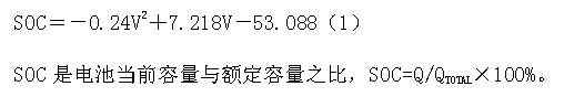 充電時電池的荷電狀態(tài)SOC(stateofcharge)可由下面的經(jīng)驗(yàn)公式來得出,其中V是電池的端電壓。
