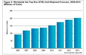 - 預計2013年STB出貨量將從2009年的1.367億個增長到將近2億個,預測期內的復合年增長率為9%