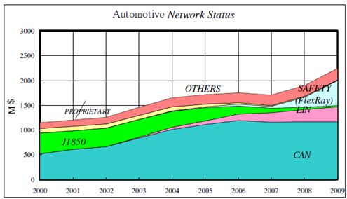 圖 汽車總線市場(chǎng) 資料來源:富士通微電子