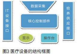 前面談了許多關(guān)于國內(nèi)嵌入式企業(yè)在發(fā)展醫(yī)療電子產(chǎn)品上的優(yōu)勢,但是,我們必須清醒地看到醫(yī)療電子產(chǎn)品(或者稱為有源的醫(yī)療設(shè)備)設(shè)計(jì)的特殊性。一般來講,醫(yī)療設(shè)備由下面幾個(gè)部分組成:電子控制部分、顯示和操作臺、給養(yǎng)供應(yīng)和數(shù)據(jù)采集、以及其他設(shè)備接口(包括IT等),如圖3。每個(gè)部分都可能有獨(dú)立的MCU或者ASIC/FPGA,甚至是高性能的嵌入式計(jì)算機(jī)組成的多處理器系統(tǒng)。軟件研發(fā)的費(fèi)用在現(xiàn)代醫(yī)療設(shè)備研發(fā)費(fèi)用中所占的比重已經(jīng)超過50%,未來還會(huì)增加。醫(yī)療設(shè)備的特殊性體現(xiàn)在下面幾個(gè)方面: