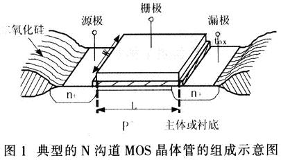 下面以N溝道MOS(metal-oxidesemiconductor)晶體管為例說明等效電路與參數之間的關系。典型的N溝道MOS晶體管組成示意圖如圖1所示。