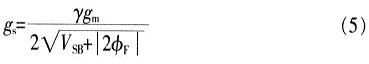 圖2中,gsVs表示第2個壓控電流源,模擬漏極電流id上的體效應。當源極與地相連時,或其電壓不變化時,此電流源可忽略。當體效應不能忽略時,則有: