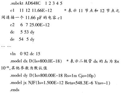 將此種的文本文件存為.lib的后綴名后,通過ModelEditor工具將該文件與器件符號聯系在一起,就可以使用在電路仿真中。圖5為AD648C的簡單運用電路,從圖6瞬態分析結果可知建模正確。